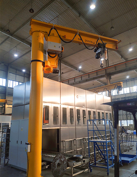 定柱式悬臂起重机是我司以起升机构为新中式低净空电动葫芦或环链电动葫芦、伺服电动葫芦开发的悬臂类产品,具有性能优越、安全可靠、节能高效和低噪环保等优点,适用于车间、仓库和电站等场所物件的吊装及搬运。